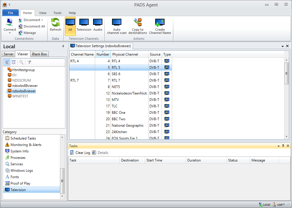 More detailed information about Television channels and the mechanism used in PADS4 can be found in the Television Channels page.